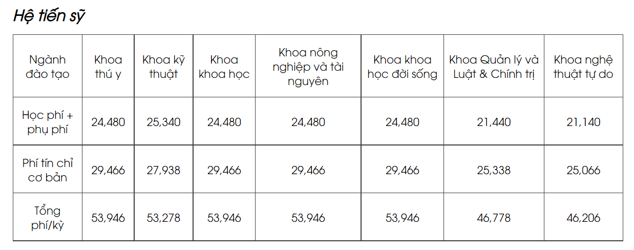 - Chi phí sinh hoạt: 1.200 USD / 6 tháng